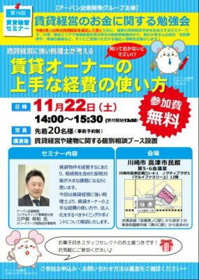第16回賃貸経営セミナー「賃貸オーナーの上手な経費の使い方」11/22(土)開催決定!