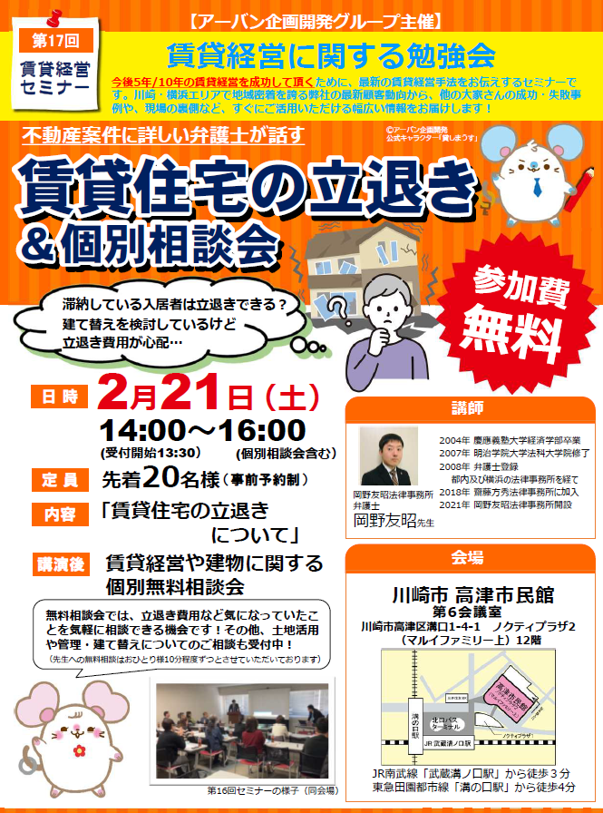 さて、第17回賃貸経営セミナーの開催が決定しましたので、
